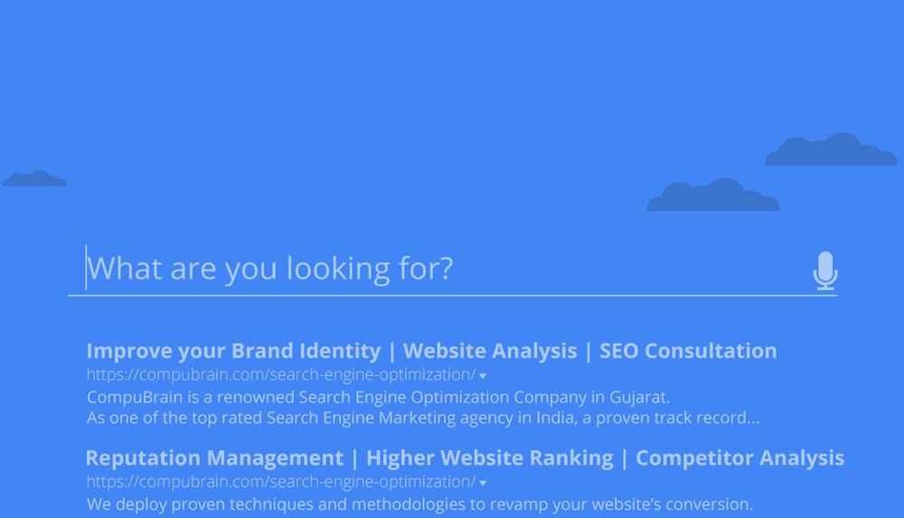 With a proven record of accomplishment of boosting business revenues with higher leads, more traffic and increased sales, CompuBrain is one of the leading Search Engine Optimization Company from Gujarat. Our professional digital marketing and SEO Service is based on proven methods and customised SEO strategies which has benefitted clients across the world. Over the years, we have developed SEO packages with respect to various Search Engine Optimization requirements in mind. Our team of talented individuals implement effective SEO tactics and strategies for assured higher ranking.